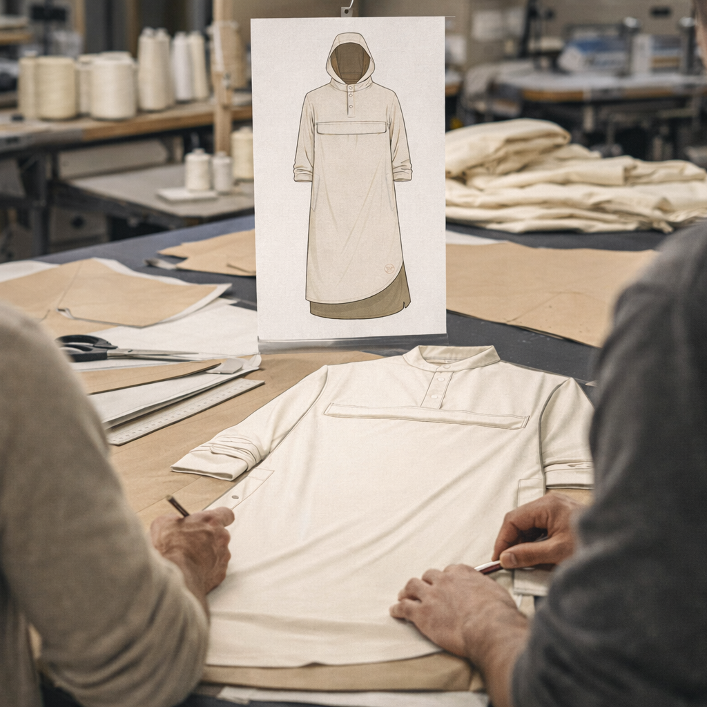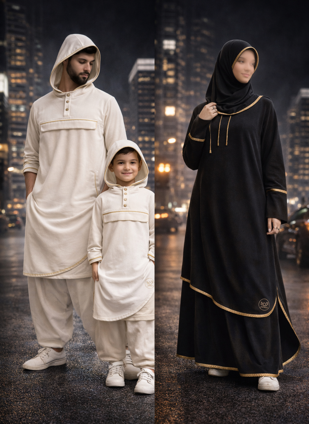 HAQQ & MIZĀN est née de la volonté d’Abd el-Hakim et Meryem de créer une marque de prêt-à-porter musulman qui ne suit pas les tendances fugaces, mais répond à un besoin sincère : celui de porter des vêtements qui ont du sens.